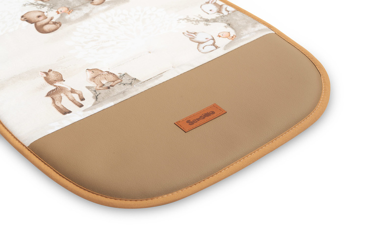 Zahvaljujući univerzalnom muslin umetku za kolica s vodootpornim osloncem za noge, svi mogu promijeniti izgled svog kolica. Umetak pomaže u očuvanju čistoće unutrašnjosti kolica i povećava udobnost pri putovanju. Najvažnije značajke: Dizajniran za kolica. Univerzalni raspored proreza za remen omogućava lako prilagodbu umetka različitim tipovima kolica. Punjeno poliesterskom spužvom koja poboljšava udobnost putovanja. Štiti kolica od prljavštine. Reverzibilan – izbor između muslina ili printanog pamuka. Oslonac za noge izrađen od eko kože, lako se čisti. Izrađeno u Poljskoj. Izrađeno od najkvalitetnijeg 100% muslinskog pamuka i 100% pamuka. Dimenzije: 80×40 cm. Poljski proizvod. Način održavanja: Ručno pranje na max. 30 stupnjeva. Ne izbjeljivati. Ne čistiti kemijski. Glačati samo pamučni sloj na max. temperaturi od 110 stupnjeva. Sastav: Navlaka: 100% pamuk/eko koža. Punjenje: 100% poliester.