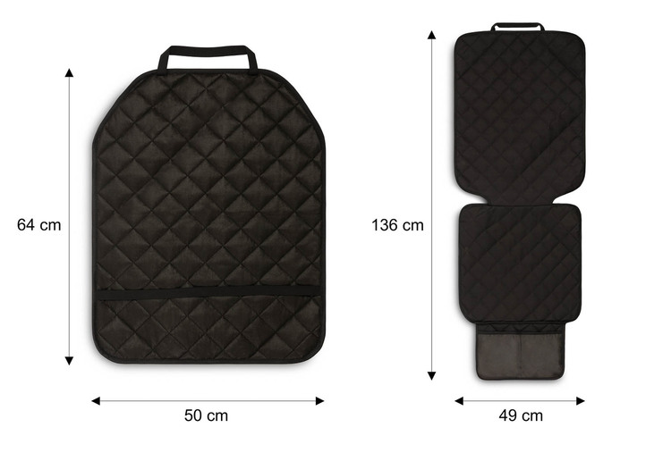 Prošivana zaštitna prostirka i zaštitnik sjedala štite presvlake od oštećenja i prljavštine. Vodootporni materijal, univerzalna veličina.