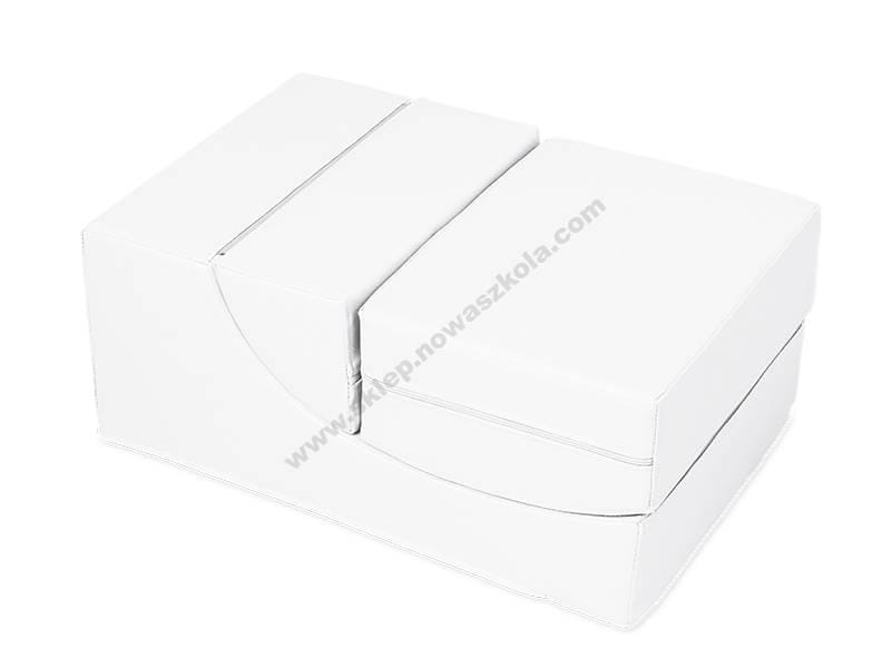 dim. sklopljena: 60 x 40 x 25 cm, dim. u rasklopljenom stanju: 90 x 40 x 39,5 cm; materijal: poliuretanska pjena, protuklizna tkanina, PVC tkanina bez ftalata u bijeloj boji