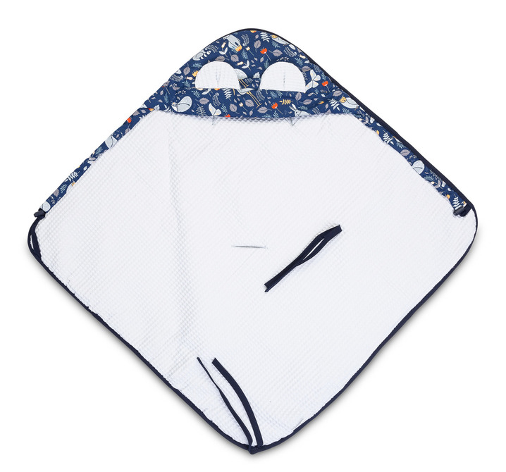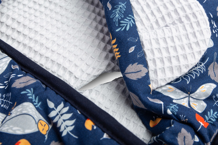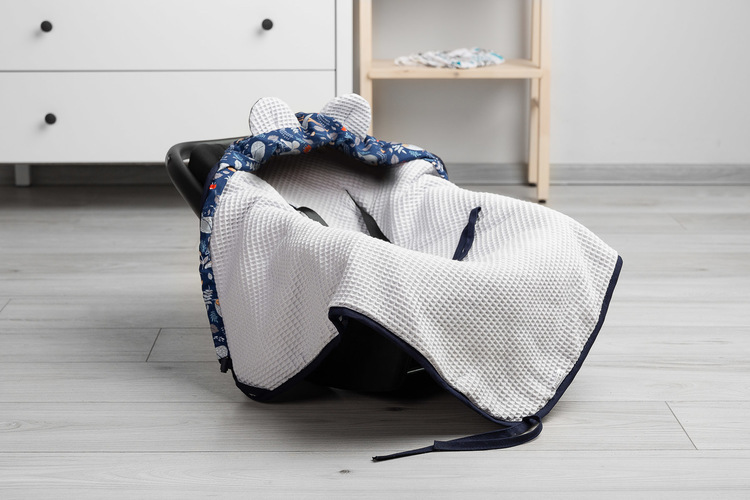 Waffle nosiljka swaddle deka dizajnirana je za najmlađu djecu. Udobna je i vrlo praktična tijekom putovanja. To je alternativa toploj dječjoj odjeći. Zahvaljujući otvorima za pojaseve na 3 točke, vrlo je funkcionalna – nema potrebe raskopčavati pojaseve da biste otkrili bebu u nosiljci. Swaddle deka ima kapuljaču koja se može podešavati s lijepim ušima. Izrađena je od 100% pamuka. Materijal: Prekrivač: 100% pamuk. Ispuna: 100% poliester. Održavanje: Ručno pranje na temperaturi do maksimalno 30°C. Ne izbjeljivati. Ne čistiti kemijski. Peglati na temperaturi do maksimalno 110°C. Najvažnije karakteristike: Štiti od hladnoće i vjetra. 3-slojna konstrukcija: obojani pamuk, protiv-alergijski uložak i mekana waffle tkanina. Može se koristiti i kao deka za kolica ili krevetić. Ima otvore za sigurnosne pojaseve na 3 točke. Optimalna veličina: 90×90 cm (+/- 2cm). Visoka kvaliteta. Poljski proizvod.